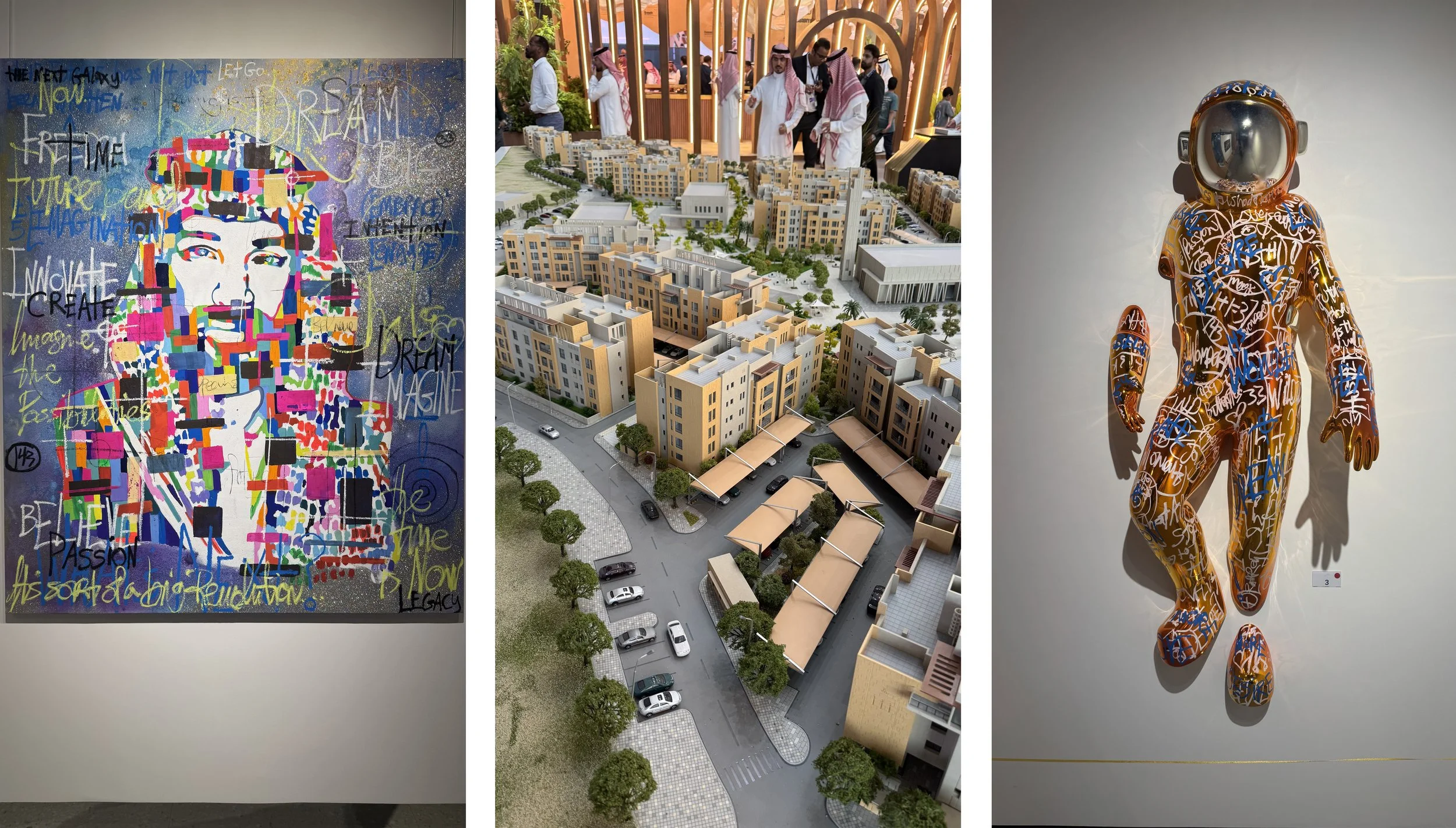 The second part of my trip saw me join the RIBA for Cityscape Global 2024. The largest delegation organised by the RIBA took place this year with over 20 practices attending and linking with the RIBA GULF division. A great breakfast briefing with expert talks across the industry was held at the iconic glass globe structure at the top of the Al Faisaliah Tower, where insights as to how new opportunities for young architectural practices can be flourished in Riyadh was insightful and saw us start our day before heading to the opening ceremony at Cityscape, a 2 hour journey form the city out into the desert. The opening day provided the perfect backdrop for astudio and International Hub Real Estate to sign our partnership agreement for future collaborations and our first commission is now underway with designs being shared.