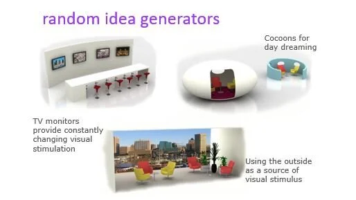 Random idea generators need constantly changing visual stimulus and spaces for daydreaming and thinking…